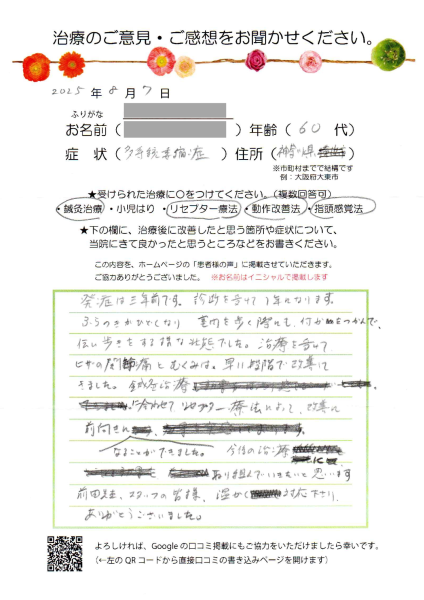 患者様より、治療のご感想をいただきました。