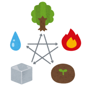 東洋医学では五行思想に基づいて、五臓六腑を自然界の木火土金水に配当しています。