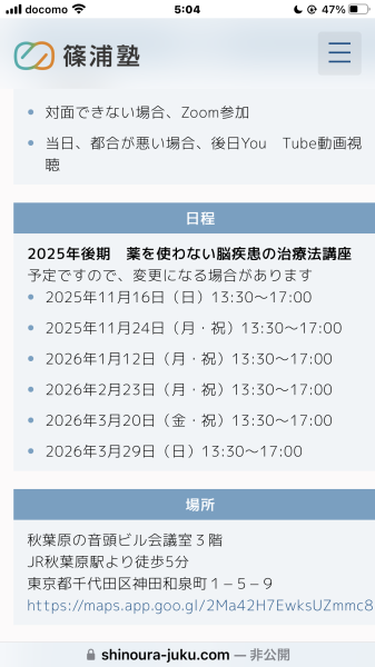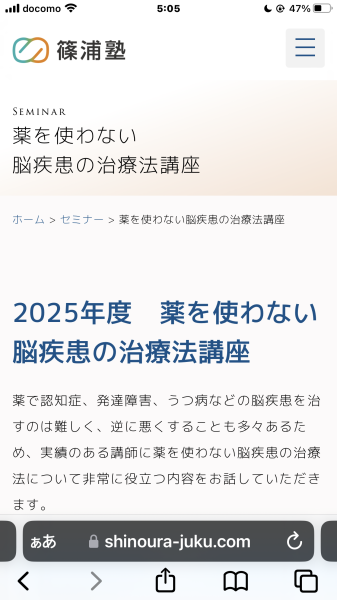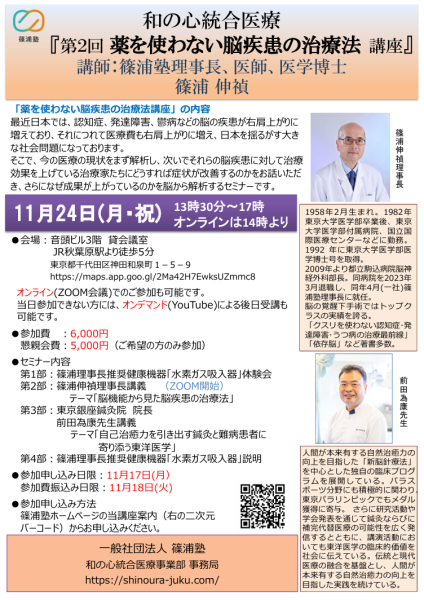 篠浦塾【2025年度 薬を使わない脳疾患の治療法講座】