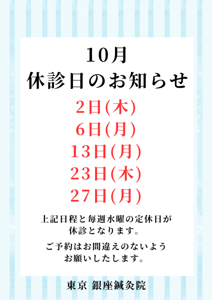 誠に勝手ながら休診日を下記の通りとさせていただきます。