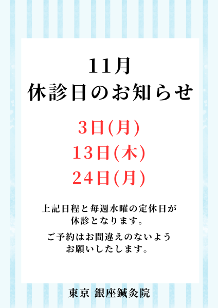 誠に勝手ながら休診日を下記の通りとさせていただきます。