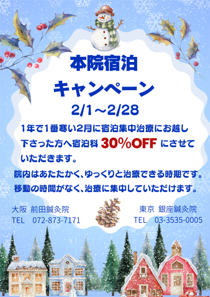 寒い時期にはなりますが、宿泊して治療を受けていただくことで