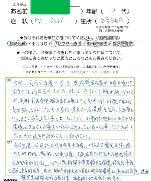 脳室周囲白質軟化症(PVL) てんかん 台湾よりPVL てんかんのお子様