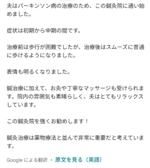 夫はパーキンソン病の治療のため、この鍼灸院に通い始めました。